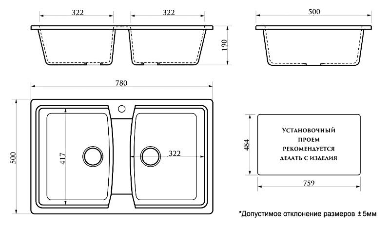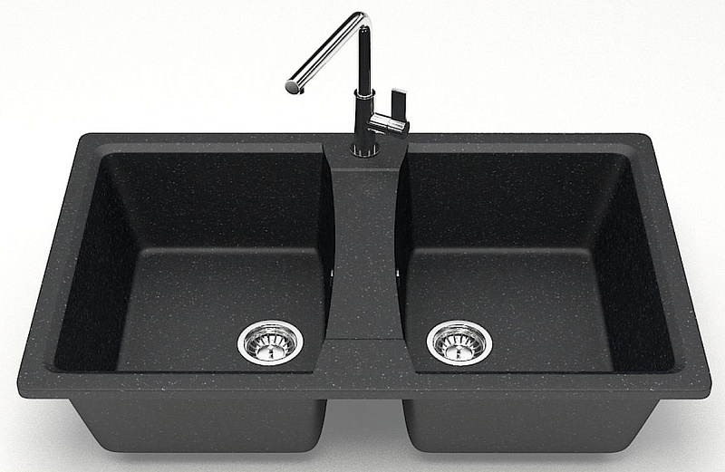 —Кухонная мойка AZARIO Elmas 780х500х190 двойная, искусственный мрамор, цвет черный (CS00078333)