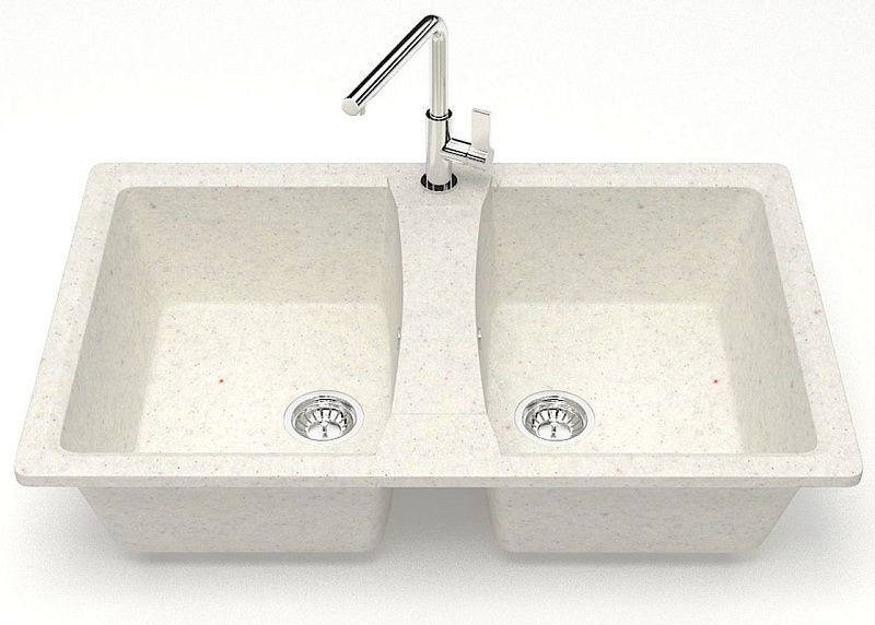 Кухонная мойка изготовлена из современных экологически чистых материалов, природного молотого кварца, мрамора или гранита с добавлением специальных пигментов и красителей.