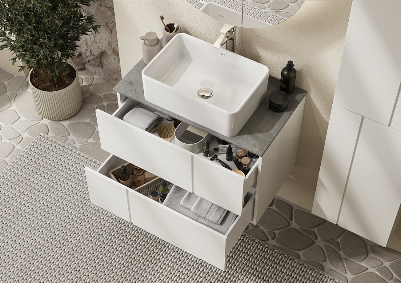 Модуль под раковину Pilar - стильное и функциональное решение для ванной комнаты. Высококачественная МДФ в матовой плёнке обеспечивает защиту от влаги и безупречный внешний вид на долгие годы. Благодаря системе push-to-open открытие ящиков происходит лёгким нажатием, что делает использование модуля максимально удобным. Отсутствие лицевой фурнитуры и уникальная фрезеровка на фасадах придают модулю современный вид, соответствующий тенденциям футуризма.