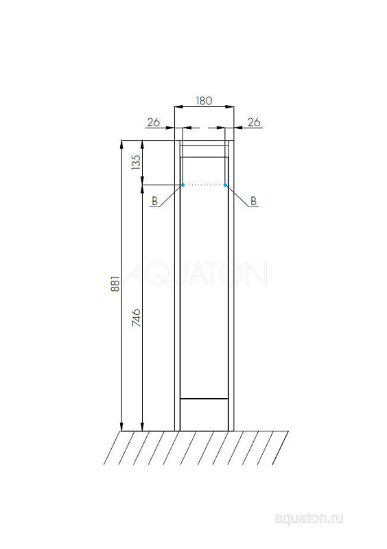 Ящик открывается с помощью изящной профильной хромированной ручки и состоит из двух отделений: верхнего и нижнего. Каждое отделение ящика выдерживает нагрузку до 20 кг. Над ручкой установлена вставка из влагостойкой ламинированной плиты благородного цвета дуб наварра.