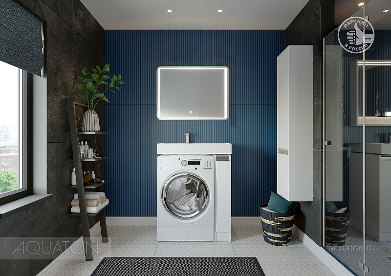 Тумба под стиральную машину AQUATON Лондри 20  (Раковина Рейн 80 белая)