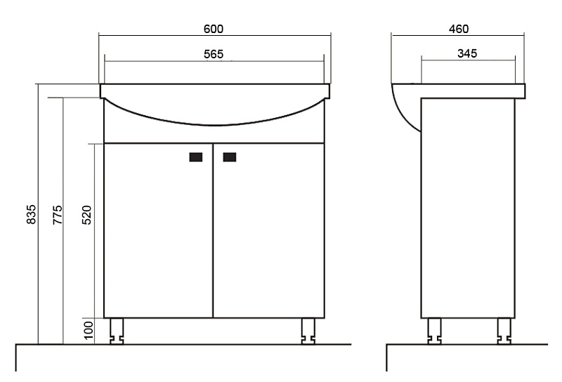 —Комплект Тумба София 60 600х820х460 с раковиной Basic 60 (CS00079242)
