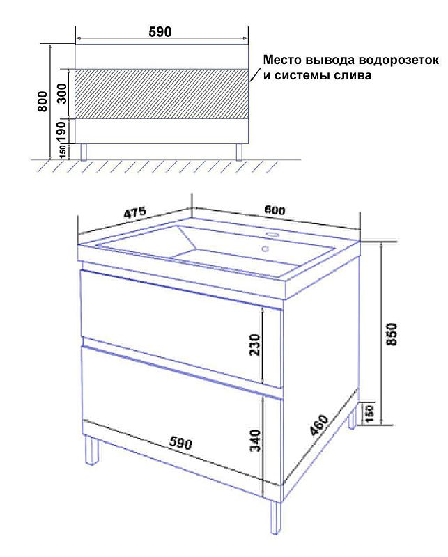 Тумба в собранном виде, напольная с 2 выдвижными ящиками.