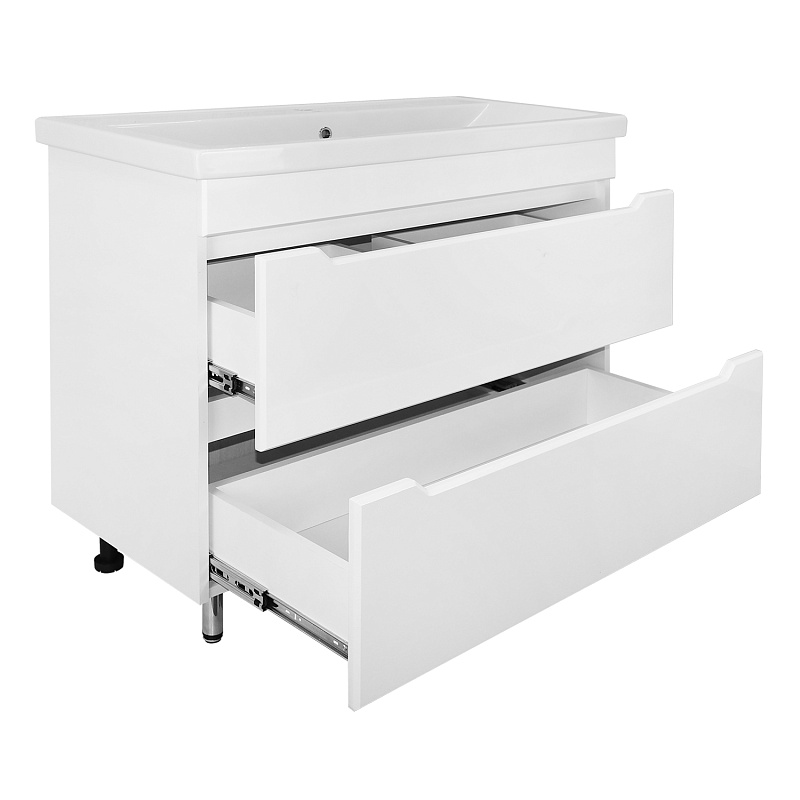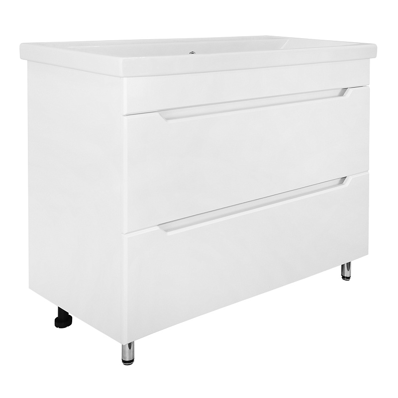 —Комплект тумба Loranto Палермо 100/2Н 1000х455х850 напольная, с раковиной Фостер 100, белый глянцевый (CS00096752)
