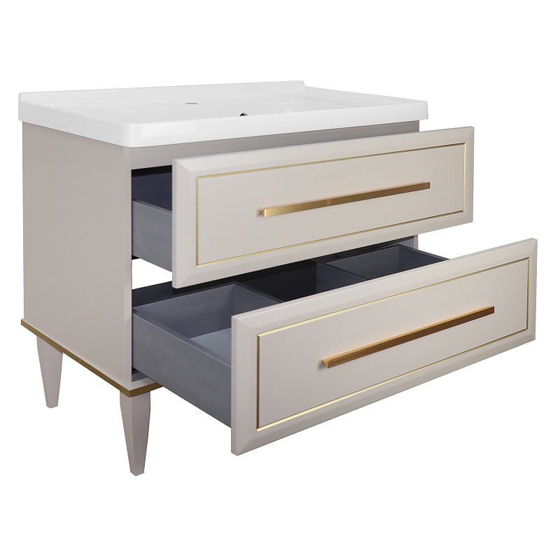 —Комплект Тумба Azario VEGA 90/2Н 900х500х880 напольная, с раковиной VEGA 90, кашемир, ручка золото (CS00098125)