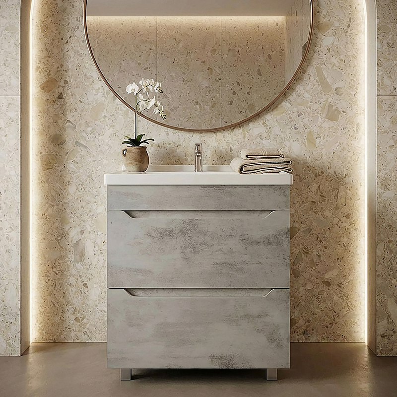 Комплект Тумба Loranto Florena 60 600х470х810 напольная, с раковиной MONTE Neo 60, светлый бетон (CS00105569)