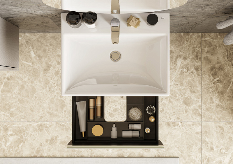 —Комплект: Тумба под раковину Roca Ona Olive 600 подвесная, 2 ящика + раковина ONA 60х46, слоновая кость (Z.RU93.1.045.6)