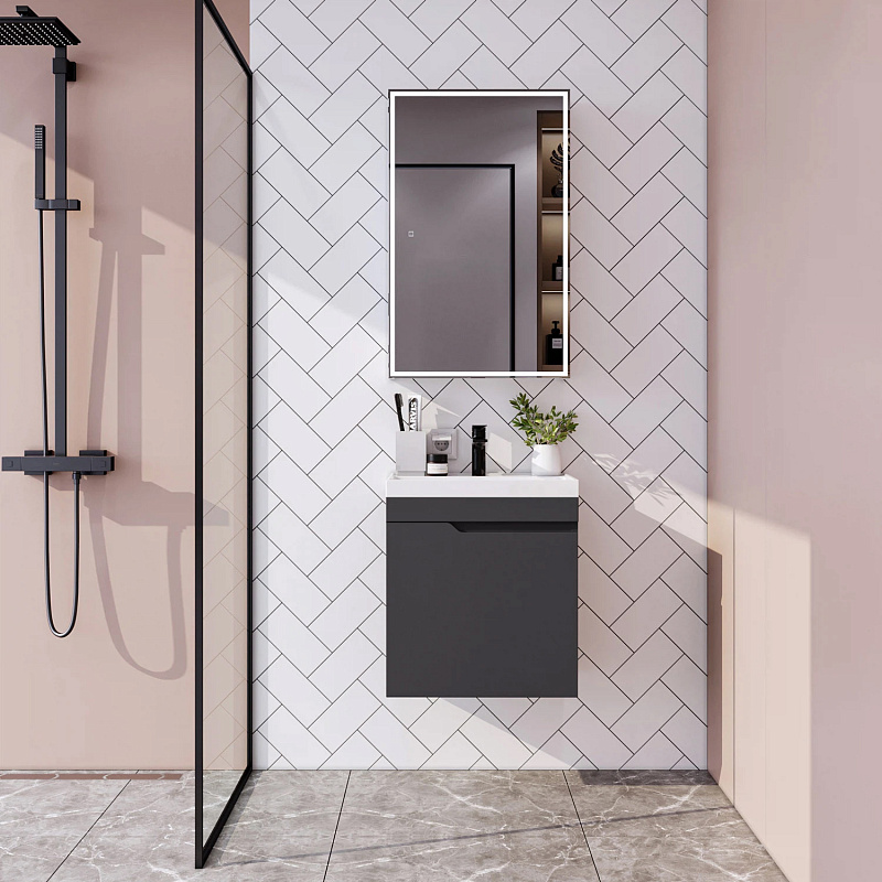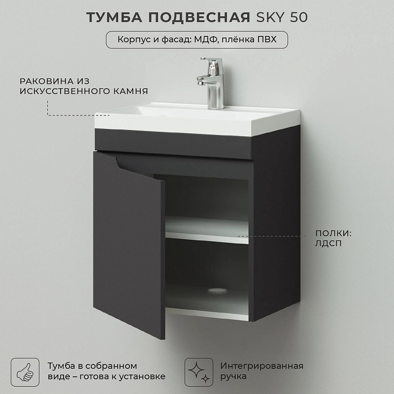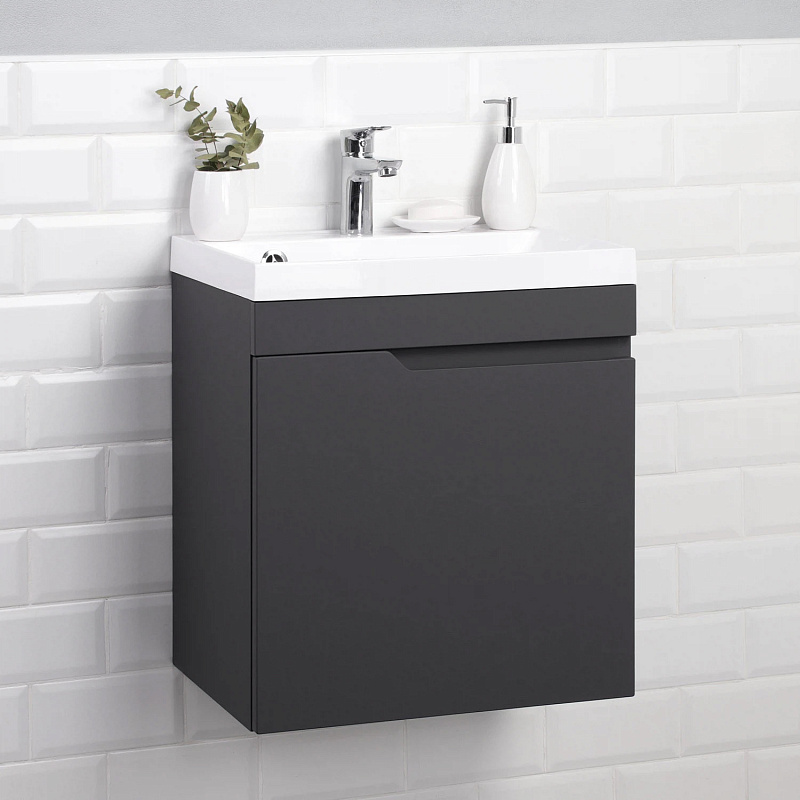 —Комплект тумба Итана Sky 50 493х343х570 подвесная, с раковиной Clarissa 50, графит (CS00091691)