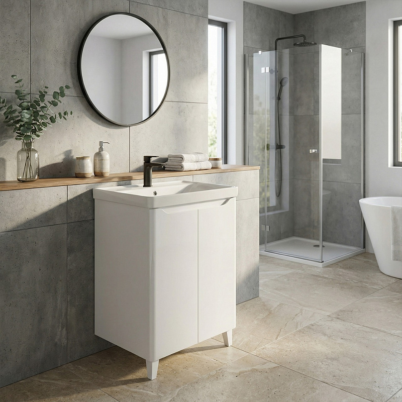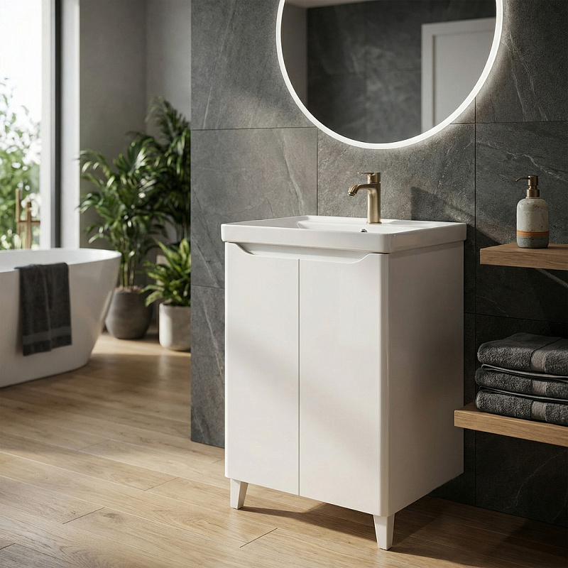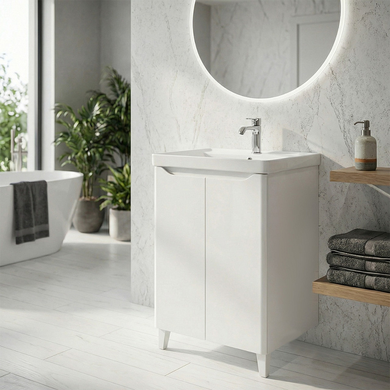 Комплект Azario Тумба LOTOS 60 Н с раковиной Monte 60 — стильное и функциональное решение для ванной комнаты. Тумба напольная размером 600х475х880 мм выполнена с фасадами из МДФ, покрытыми глянцевой эмалью, что придаёт изделию современный и элегантный вид, а также обеспечивает долговечность и лёгкость в уходе. В комплект входит раковина Monte 60 из качественного санфаянса, которая гармонично дополняет тумбу и обеспечивает комфортное использование. Этот комплект идеально подходит для создания уютного и практичного интерьера ванной комнаты.