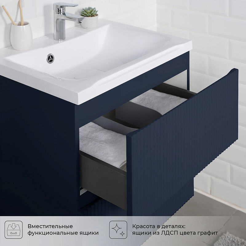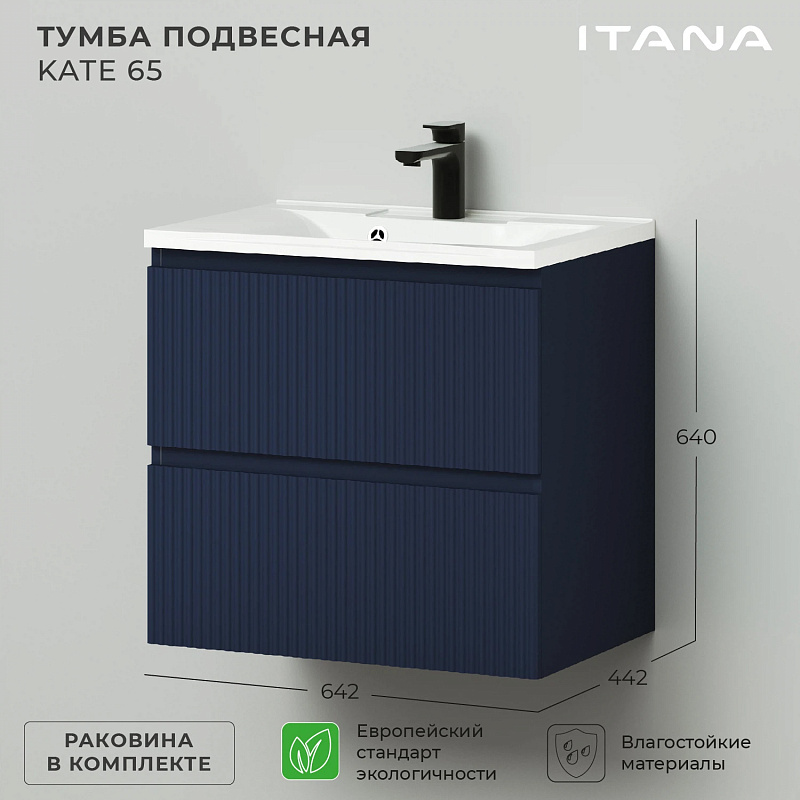 —Комплект тумба Итана Kate 65 (642х442х640) подвесная, с раковиной Milena 65, океания (CS00090003)