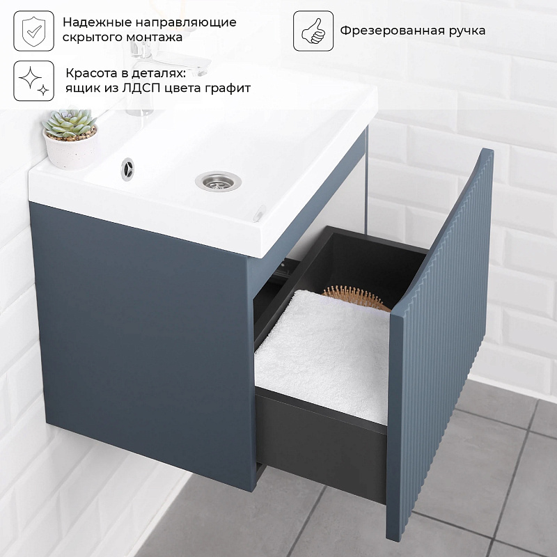 Коллекция Kate - воплотила в себе тренд на фактурные фасады. Идеальный "рубчик" - простое и стильное дизайнерское решение для декорирования фасадов - эта мебель бесспорно станет украшением современной ванной комнаты. Коллекция выполнена из МДФ и покрыта ПВХ пленкой, что делает её устойчивой к влаге, а значит долговечной. Удобные фрезерованные ручки, качественная фурнитура с доводчиками, вместительность - мы продумали все, чтобы мебель была не просто красивой, но еще и функциональной, приятной в использовании.
