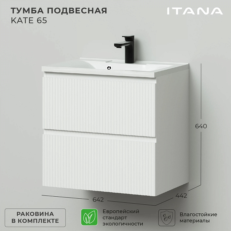 —Комплект тумба Итана Kate 65 (642х442х640) подвесная, с раковиной Milena 65, Бланж (CS00091824)