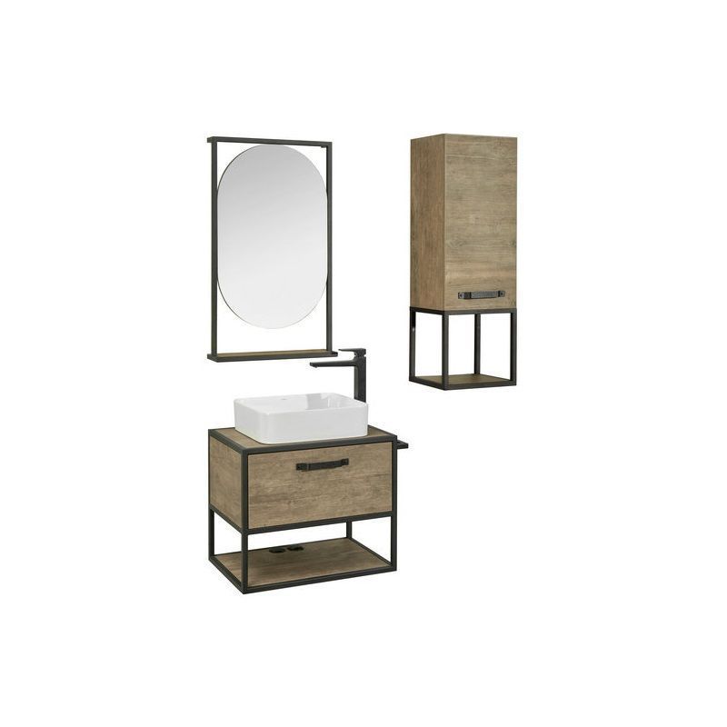 Полка выполнена из черного металлического профиля и влагостойкой ламинированной плиты. Она идеально подойдет для того, чтобы расставить в ванной комнате четкие акценты в дизайне и обеспечить дополнительное место для хранения.