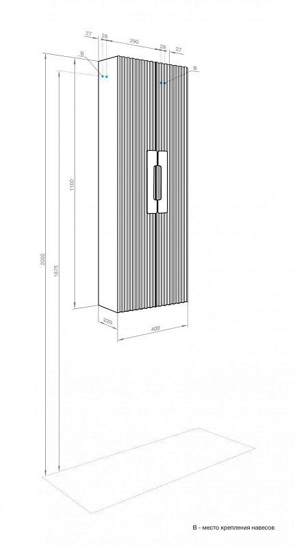 —Пенал подвесной AQUATON Ар-Деко, 2 створки, кашемир (1A284703DD6E0)