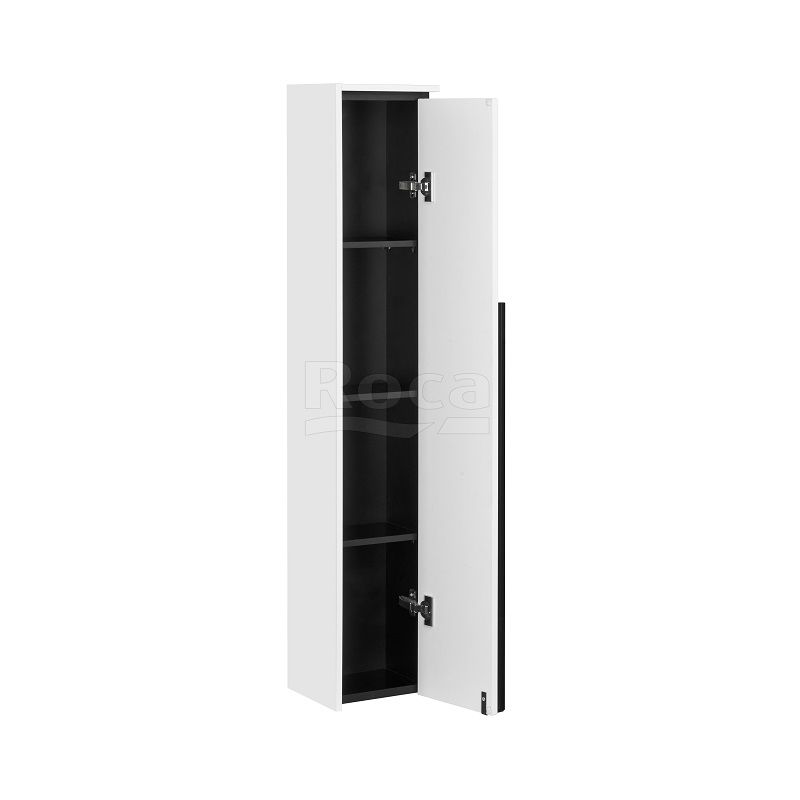 Компактная и функциональная шкаф-колонна Aneto является прекрасным дополнением к комплекту Aneto. Изящная черная матовая ручка удобна в использовании и подчеркивает графичность дизайна коллекции. За фасадом находится вместительное отделение с тремя регулируемыми по высоте полочками из влагостойкой ламинированной плиты, на которых можно разместить все необходимые принадлежности. Петли снабжены доводчиками для комфортного использования.