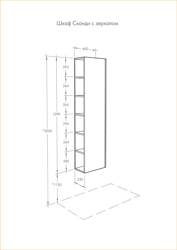 —Пенал подвесной AQUATON Сканди с зеркалом, дуб верона (1A253403SDB20)