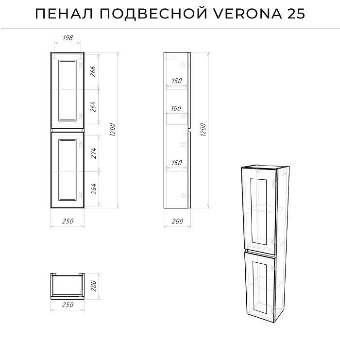 —Пенал подвесной Итана Verona 25 250х200х1200 Керамик (CS00080605)