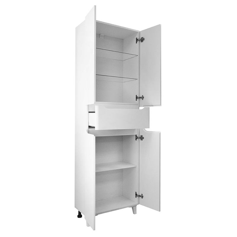 Пенал в собранном виде, имеет четыре распашных фасада и один выдвижной ящик.