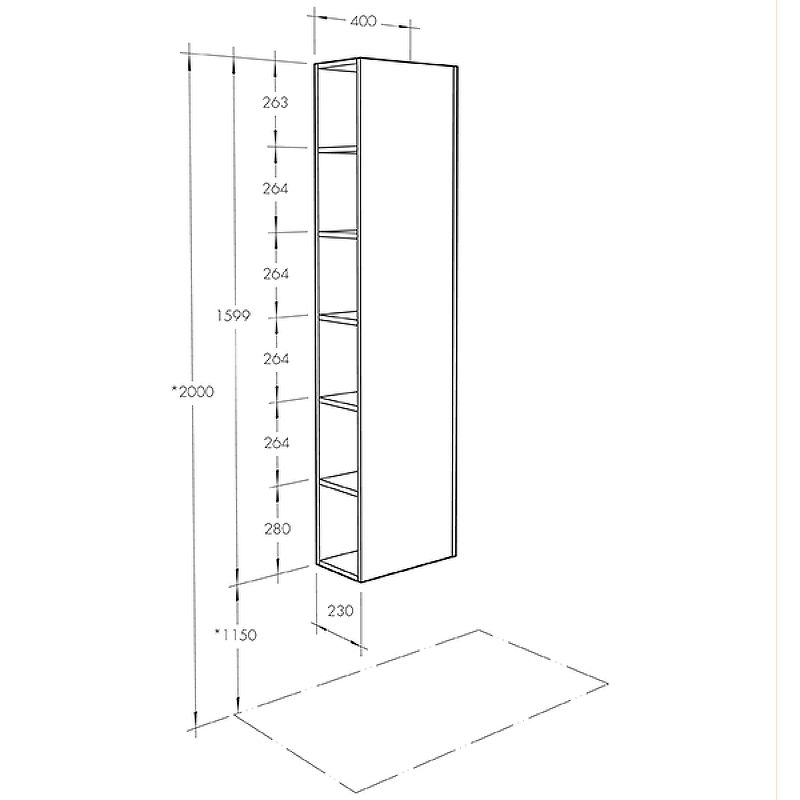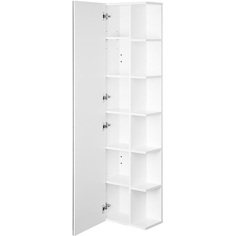 В состав коллекции входит необычная шкаф-колонна, за зеркальными створками расположены нерегулируемые (верхние и нижние) и 3 регулируемые полочки (по центру), и разделенные перегородкой открытые полочки, таким образом, обеспечивая легкий доступ к открытым полкам без необходимости открывания фасада.