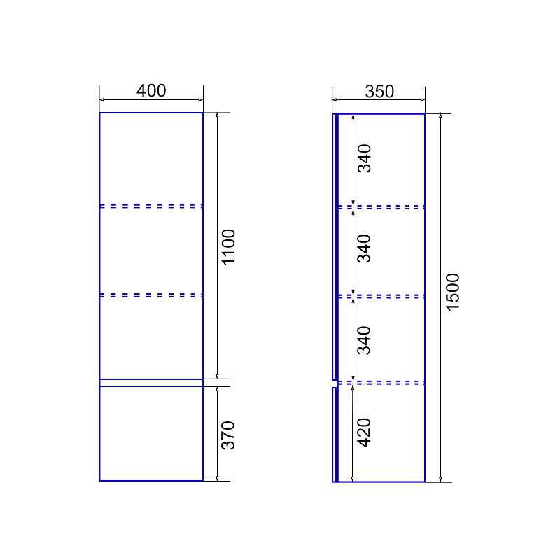 Два распашных фасада. В первом распашном фасаде две стеклянные