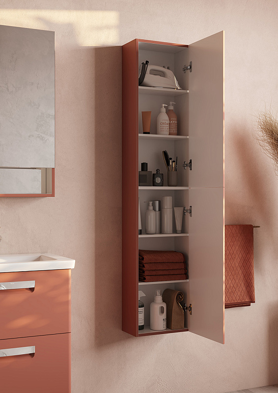 Шкаф-колонна The Gap Original от испанского бренда Roca позволяет создать стильное пространство ванной комнаты. Корпус и фасады выполнены из МДФ в прочной матовой пленке. Металлические ручки удобны в использовании и вместе с петлями с доводчиками делают процесс открывания створок легким и приятным. Регулируемые полочки из влагостойкой ЛДСП позволяют грамотно оформить внутреннее пространство шкафа-колонны. Благодаря компактной глубине 200 мм шкаф-колонну можно установить даже в небольшие ванные комнаты.