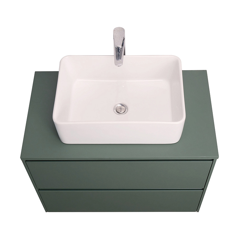 Столешница из МДФ в пленке зеленого матового цвета обладает простым, но привлекательным дизайном. Она подойдет для комплектации тумб коллекции Ona накладными раковинами. Отсутствие выреза в столешнице позволяет установить любую накладную раковину.