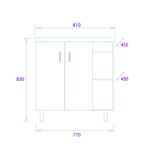 Открытые полки справа обеспечивают быстрый доступ к часто используемым аксессуарам, а пространство за распашными дверцами слева, снабженными системой плавного закрывания, станет удобным местом для хранения различных бытовых принадлежностей.
