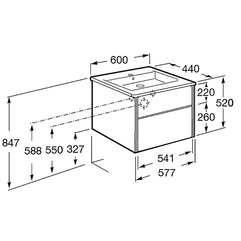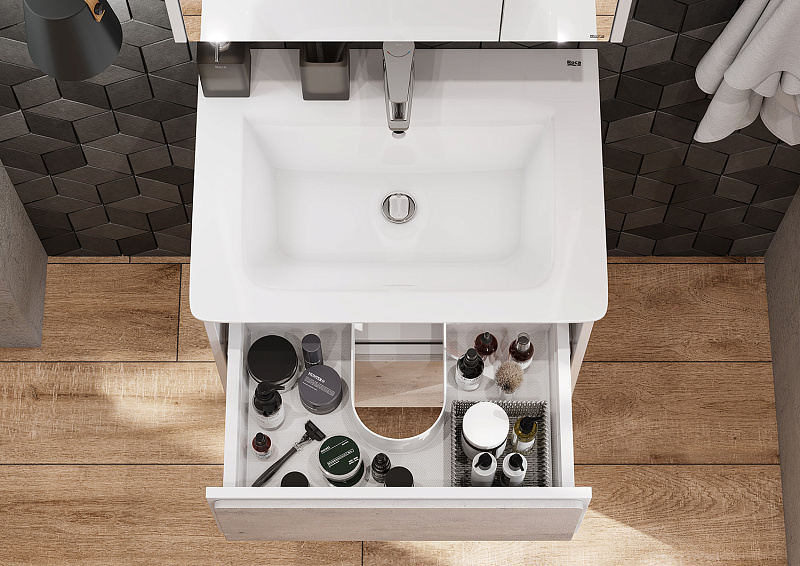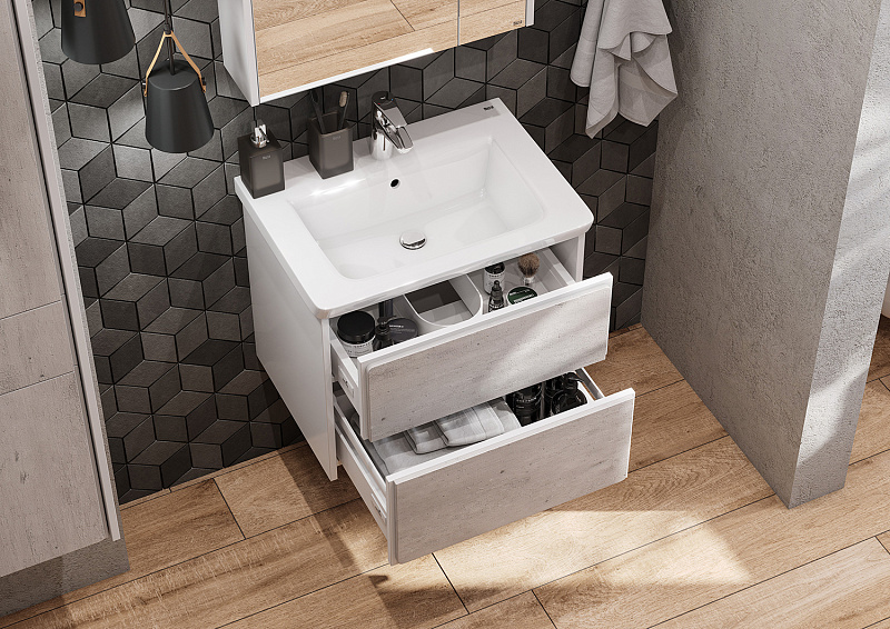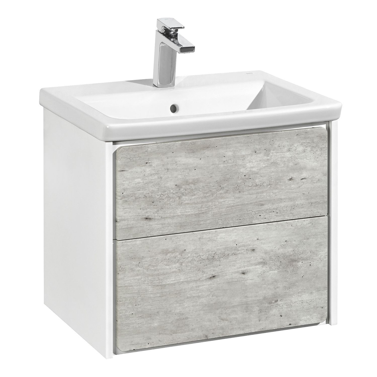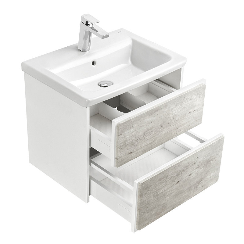 —Тумба под раковину Roca Ronda, 60 см, с ящиками, белый матовый/бетон (Z.RU93.0.300.2)