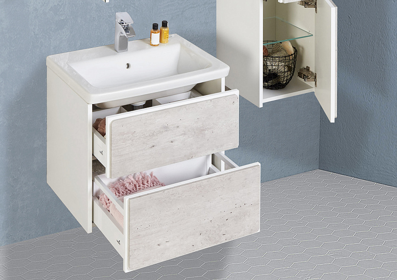 —Тумба под раковину Roca Ronda 70 ящики с доводчиками, белый матовый/бетон (Z.RU93.0.300.3)