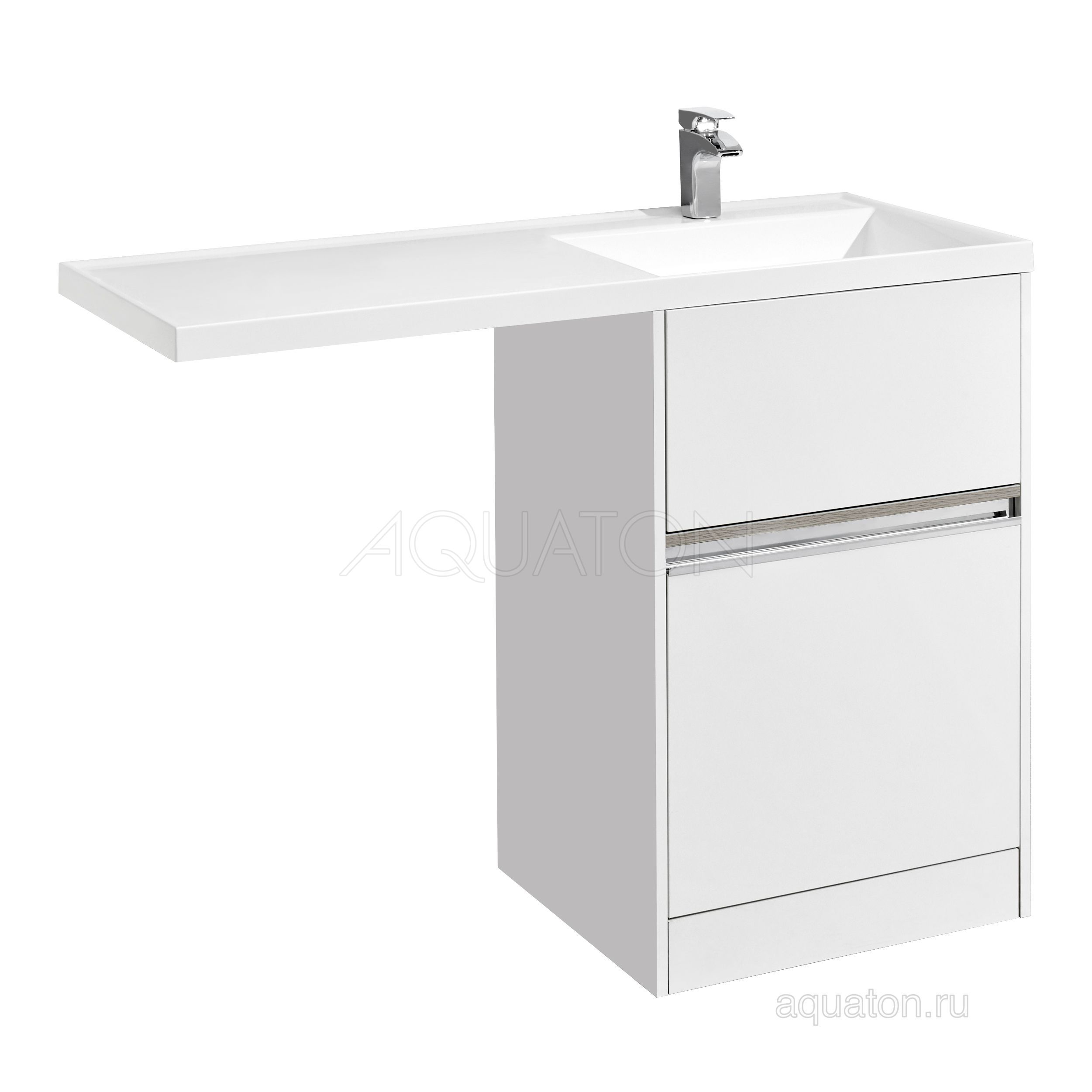 Тумба комплектуется раковиной Лондри 120 из прочного литого мрамора, который устойчив к воздействию химических средств. Широкое крыло раковины обеспечивает ванную комнату дополнительным функциональным пространством. Раковина к тумбе приобретается отдельно!