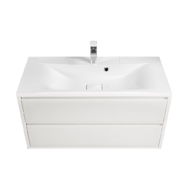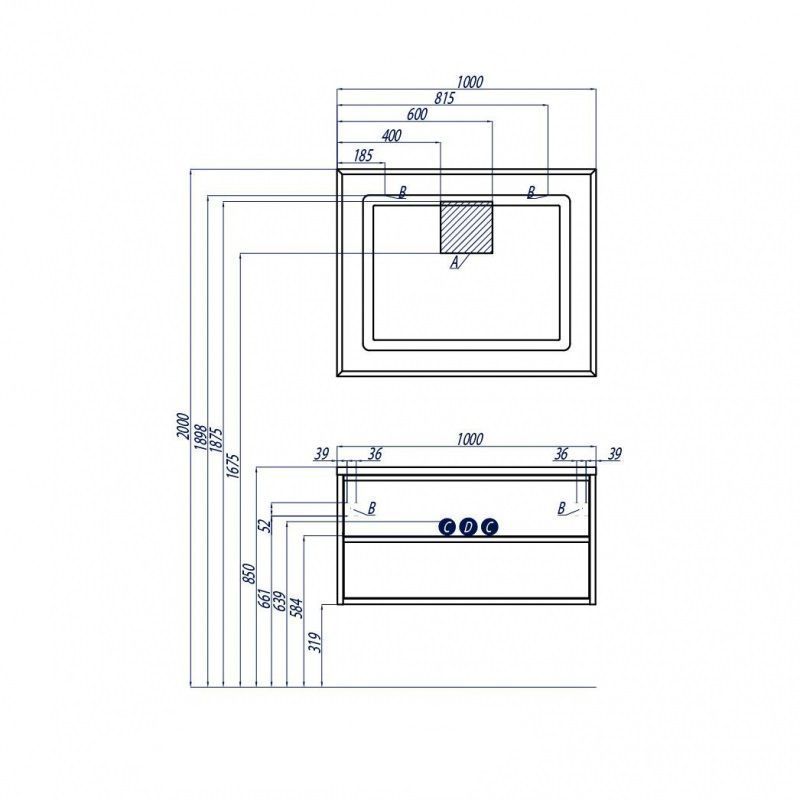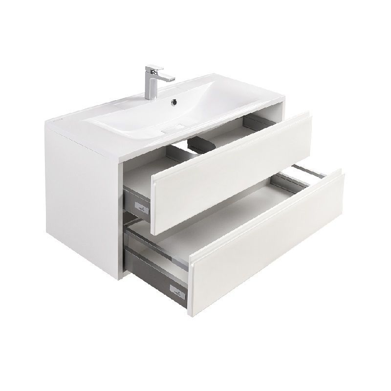 В тумбе установлены два ящика с системой плавного закрывания.