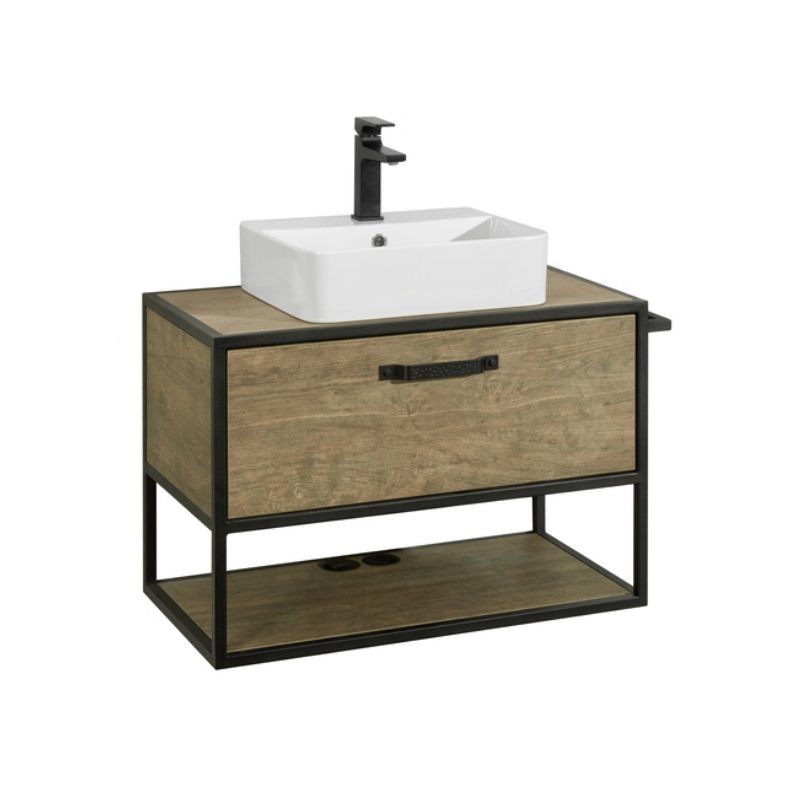 Тумба Лофт Фабрик 80 в цвете Дуб Кантри – это сочетание насыщенного древесного декора и благородства металла.