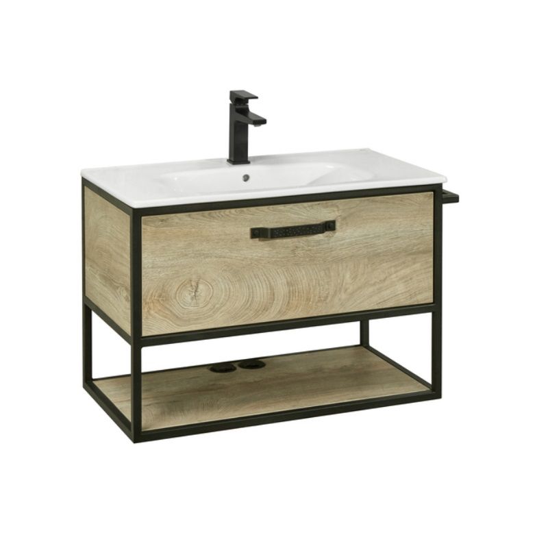 Тумба Лофт Фабрик 80 в цвете Дуб Эндгрейн – это сочетание насыщенного древесного декора и благородства металла.