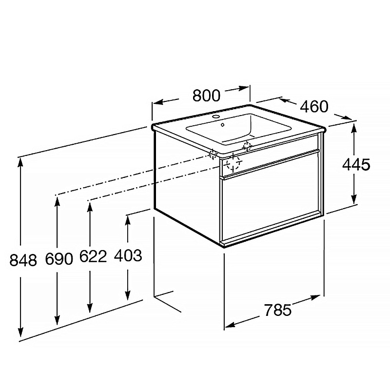 —Тумба под раковину Roca ANETO 800 подвесная, белый (7.8574.3.080.6)