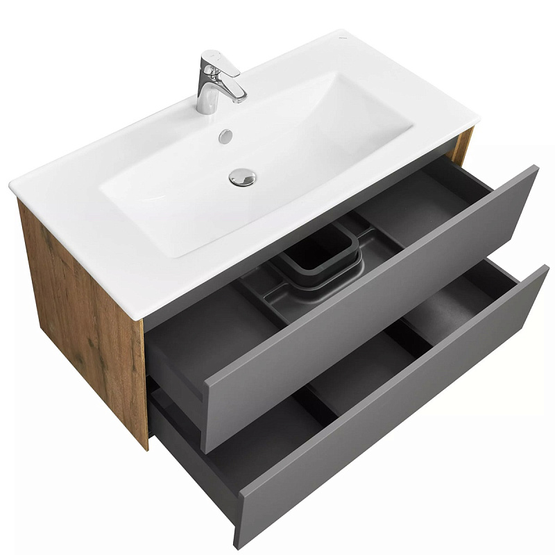 —Тумба под раковину AQUATON Сохо 100 подвесная, Дуб Веллингтон/Графит софт (1A258201AJA00)