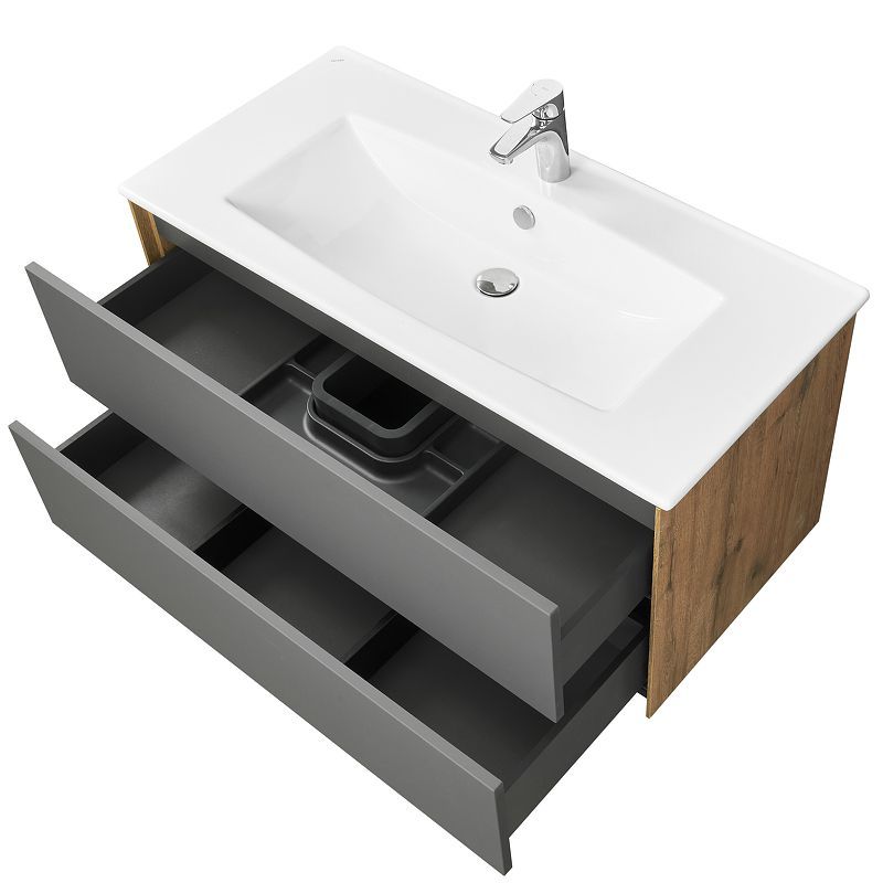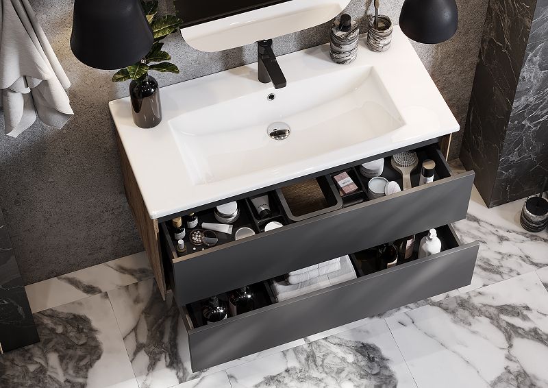 Тумба под раковину AQUATON Сохо 100 подвесная, Слэйт\Галька серая (1A258201AJ9A0)