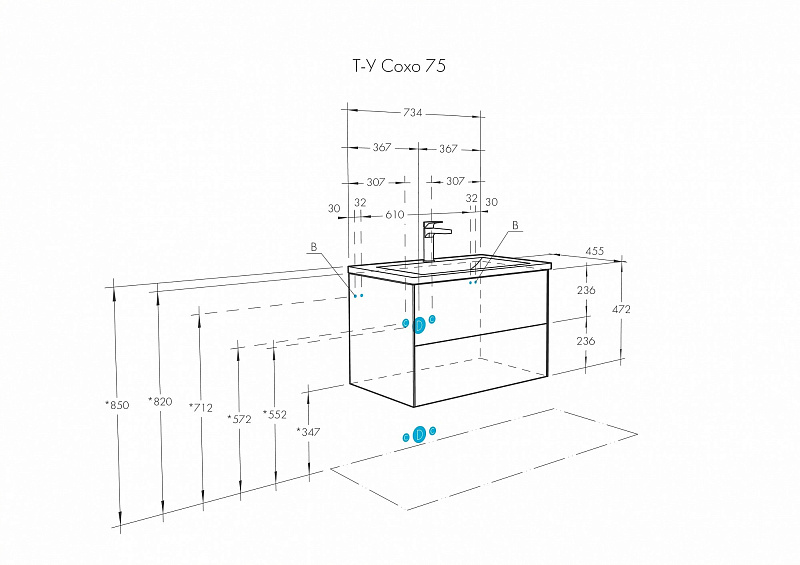 Тумба под раковину AQUATON Сохо 75 подвесная, Слэйт\Галька серая (1A258101AJ9A0)