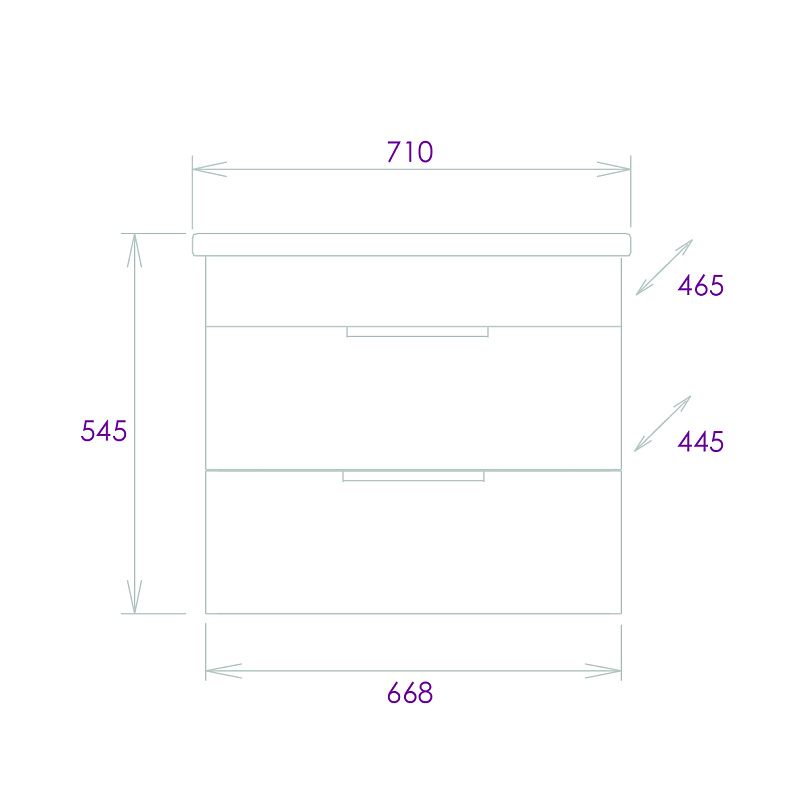 Тумба имеет два ящика, снабженные системой плавного закрывания. Нижний предназначен для больших предметов, а верхний, имеющий удобную систему организации пространства, - для мелких аксессуаров.