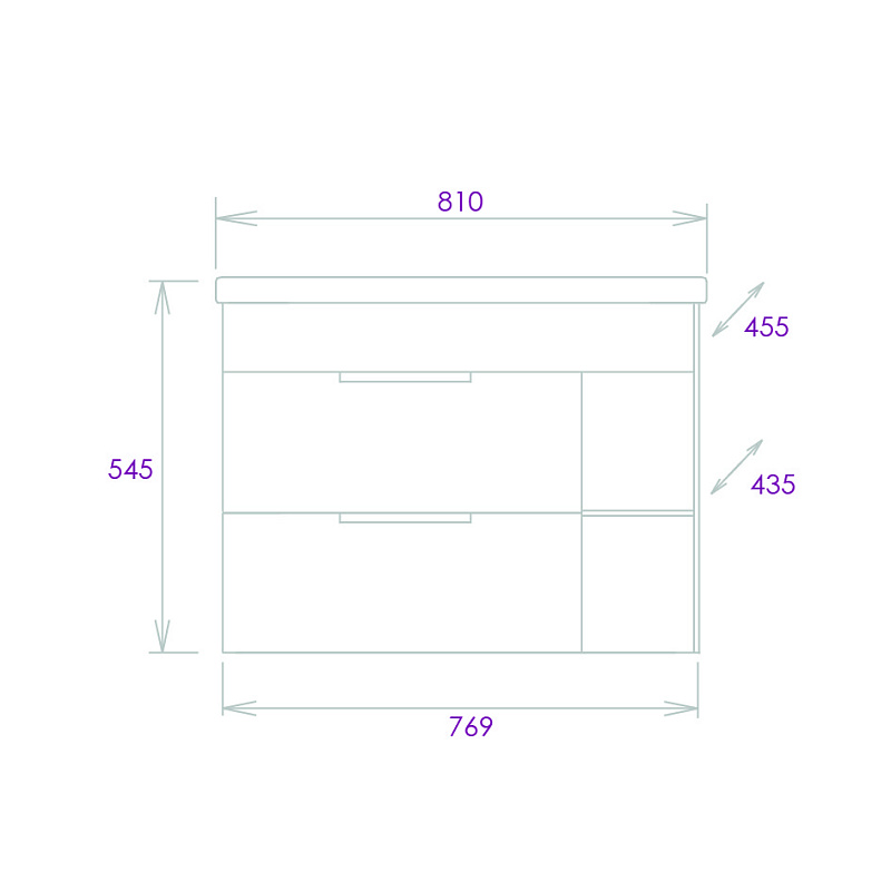 Тумба имеет два ящика, снабженные системой плавного закрывания. Нижний предназначен для больших предметов, а верхний, имеющий удобную систему организации пространства, - для мелких аксессуаров. Две открытые полки справа от ящиков служат дополнительным пространством для хранения.