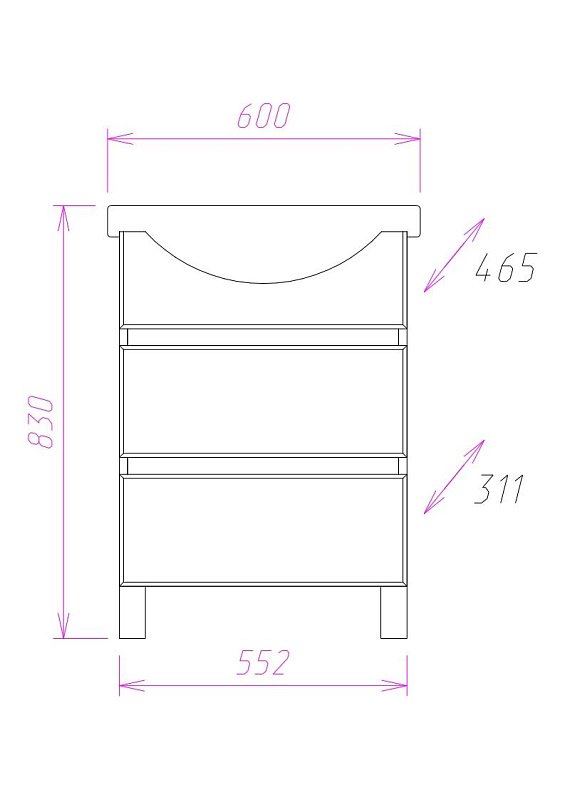Верхний ящик тумбы имеет систему разделения внутреннего и подсифонного пространства.
