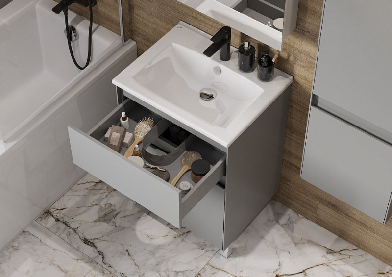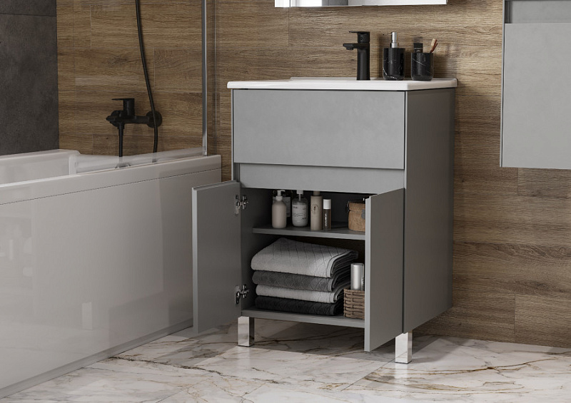 —Тумба под раковину Aquaton Форест 60 см, универсальный монтаж, туманный серый (1A278201FR4D0)