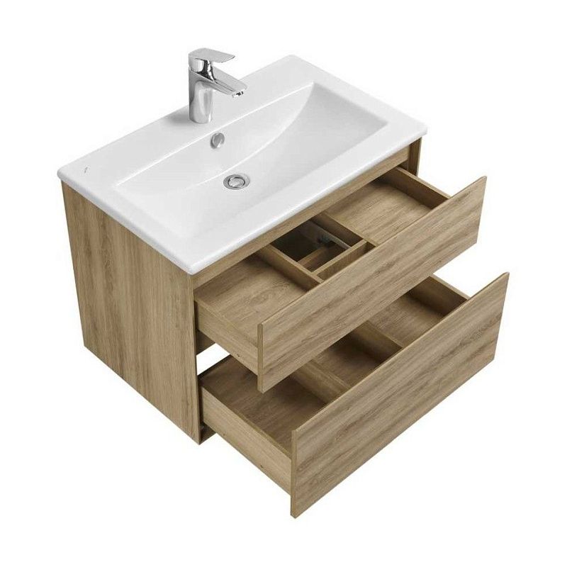 Коллекция мебели Либерти предлагает функциональные и эстетичные решения для ванных комнат. Тумбы с 2 ящиками выполнены в едином цветовом решении, что придает им гармоничный и стильный вид. Корпус, фасады и внутренняя организация тумб изготовлены из влагостойкой ЛДСП, имитирующей текстуру дерева. Боковины тумб обработаны по особой технологии, создающей эффект тонких линий и в то же время сохраняющей надежность конструкции. Ящики открывваются одним нажатием, так как оснащены механизмом Push-to-Open, гарантирующим плавное открывание и закрывание. В тумбах с ящиками размером от 70 см предусмотрена регулируемая система хранения, которая позволяет организовать пространство внутри ящика максимально эффективно. Это обеспечивает комфортное хранение вещей в ванной комнате. Тумбы Либерти с 2 ящиками могут быть дополнены мебельной раковиной “Элина”, которая отличается вместительной чашей и изящными бортами. Также они совместимы с накладными раковинами Roca Mila, Santek Одри и Aquaton Лола.