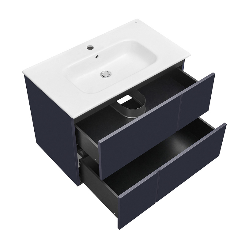 Тумба под раковину Roca Luna 80, подвесная, 2 ящика, синий матовый (Z.RU93.0.776.7)