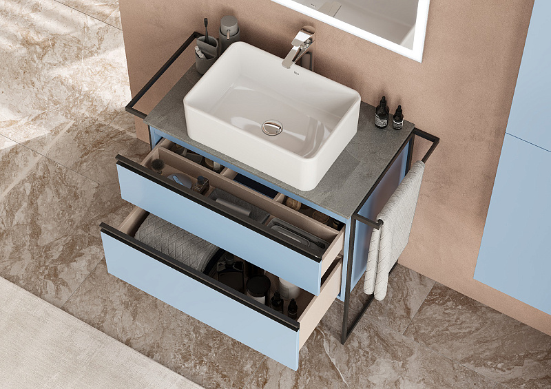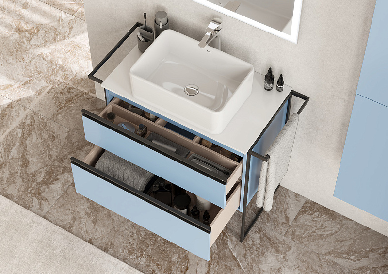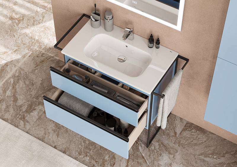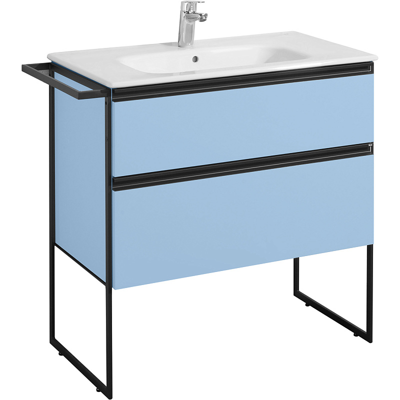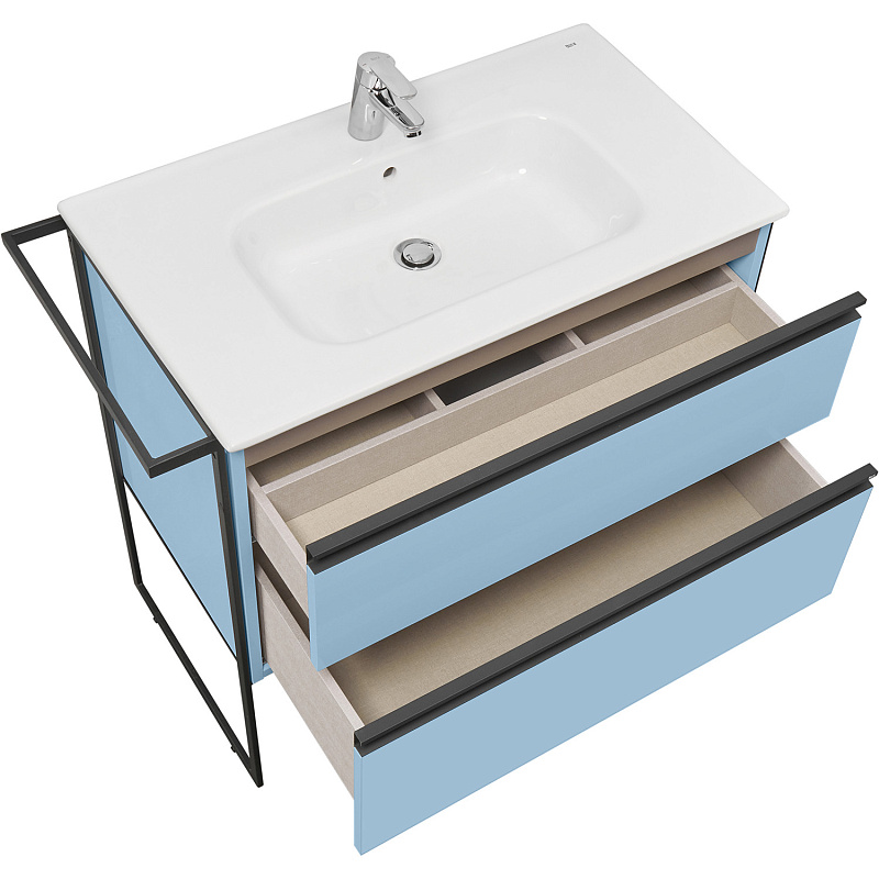 —Тумба под раковину Roca DOMI 800 мм, 2 ящика, подвесная, небесный синий матовый (Z.RU93.0.787.1)