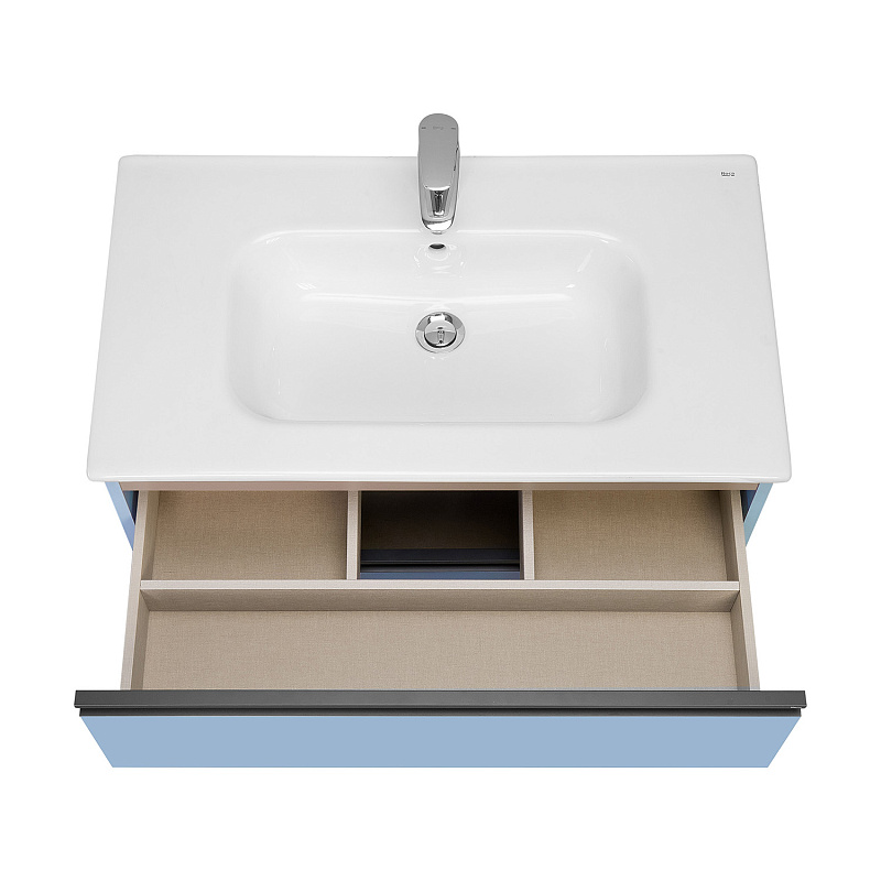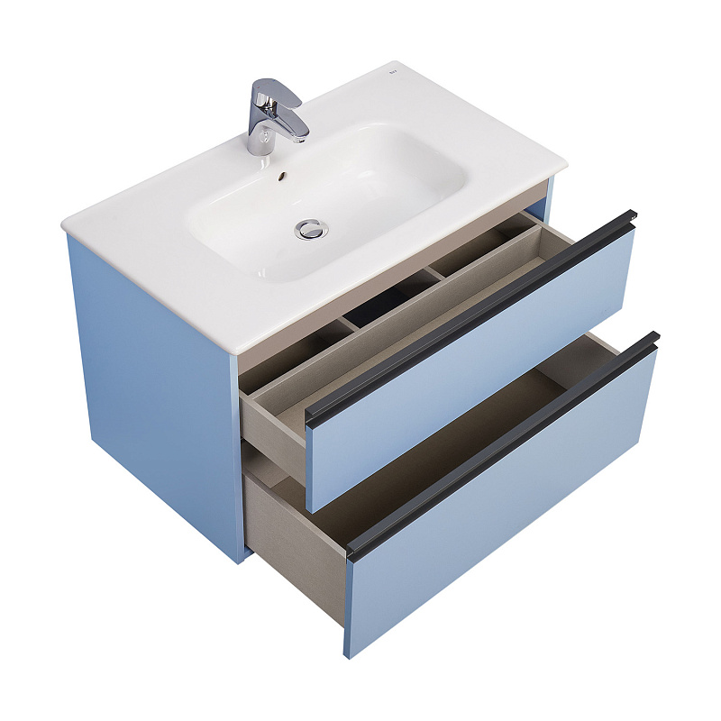 Тумба под раковину Roca DOMI 800 мм, 2 ящика, подвесная, небесный синий матовый (Z.RU93.0.787.1)
