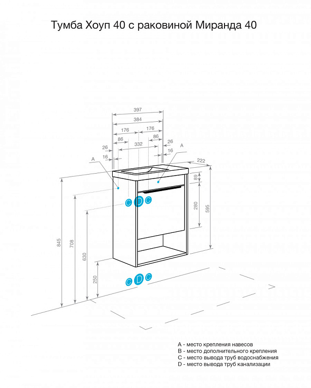 —Тумба под раковину AQUATON Хоуп 40, подвесная, 1 створка, белый матовый (1A287101HP2B0)