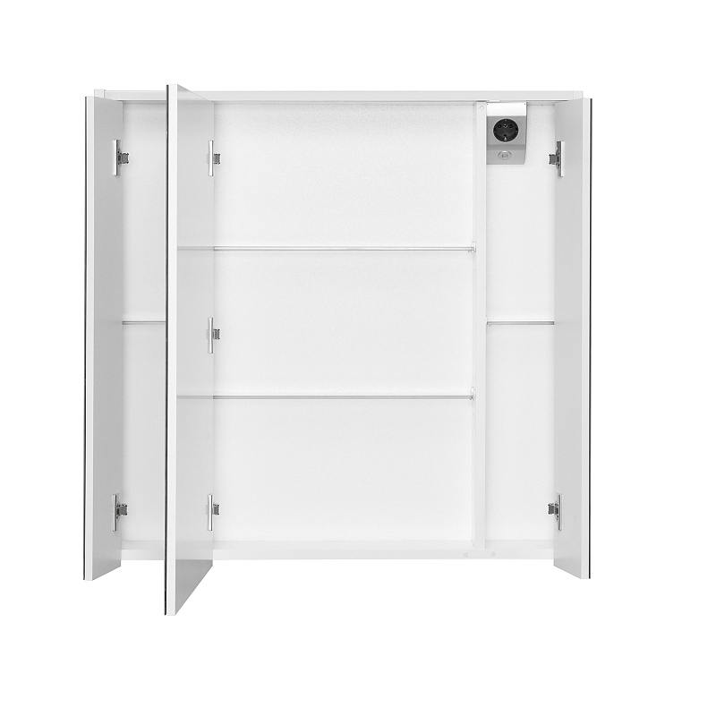 Зеркальный шкаф Ronda в современном стиле от испанского бренда Roca, выполненный из высококачественной влагостойкой ЛДСП и МДФ, с LED-подсветкой, сенсорным выключателем с диммером, розеткой, регулируемыми по высоте стеклянными полочками и петлями с плавным доводом