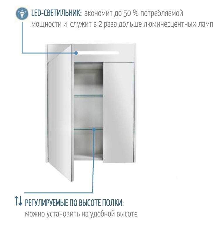 —Зеркало-шкаф AQUATON СИЛЬВА 60с подсветкой, Дуб Фьорд (1A216202SIW60)