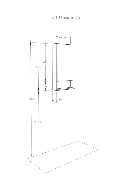 —Зеркало-шкаф AQUATON Сканди 45 дуб верона (1A252002SDB20)