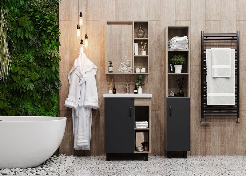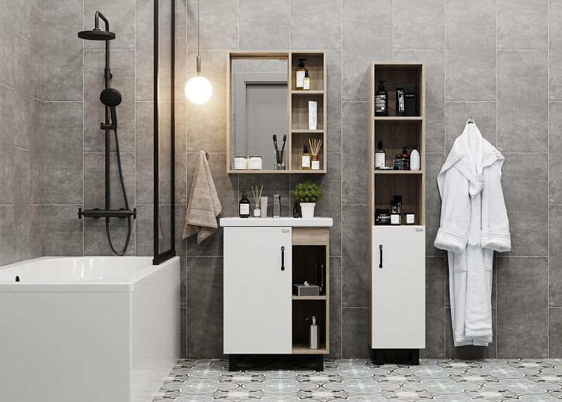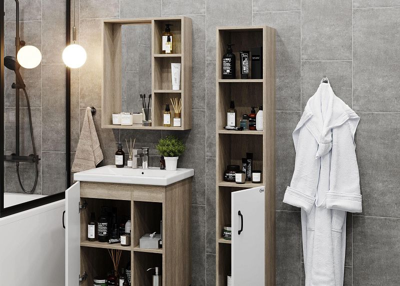 Зеркальный шкаф Onika ТИМБЕР 60.00У отражает современные тенденции в дизайне мебели для ванных комнат: минимализм с простыми и понятными формами, цвета дуба с роскошной текстурой, отсутствие лишних деталей.